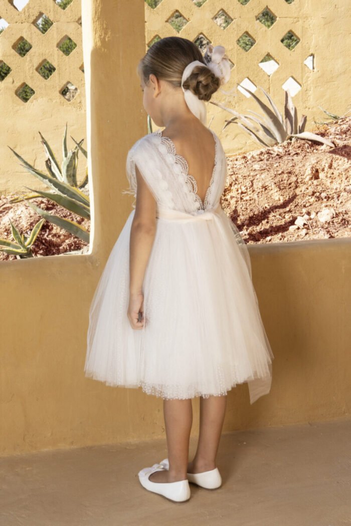 Ξεχωριστό φόρεμα Baby Βloom 124.106.6970 της συλλογής stile di vita mediterraneo 2024 που συνδυάζει τούλι σε απόχρωση ιβουάρ κ τούλι κεντητό πουά για αυτό το μοναδικό αποτέλεσμα.